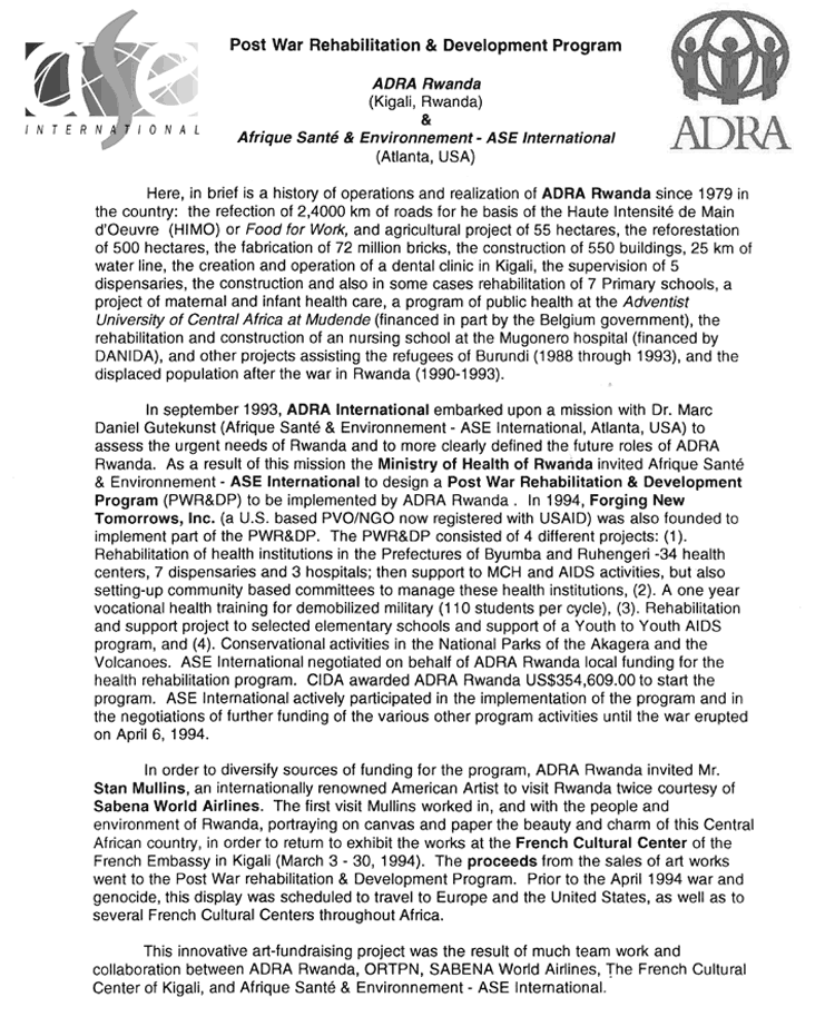 existing health systems in Africa. The publication of Majii and the Mountain Gorillas of Rwanda is source of great pride to us at FNT. This project represents the outcome of a unique educational and creative collaboration between Marc-Daniel Gutekunst and Stan Mullins (two founding members of FNT), the Dian Dossey Gorilla Fund International (DFGFI), deeply committed educators, passionate parents and, most importantly, several hundred inspired and inspiring elementary and high school students. We hope that the involvement of the children in the making of the book, educating them about the gorillas, their natural habitat and their interaction with people, as well as providing them with creative means of, individually and collectively, making a difference, shall inspire others to use the professional and personal concerns of parents and local institutions to complement the public school curriculum in its endeavor to introduce children to a diverse, complex and exciting world beyond the classroom. Proceeds from the sale of the book will be donated to the Dian Fossey Gorilla Fun International to provide scholarships to Rwandan students committed to the conservation of wildlife in Rwanda.
